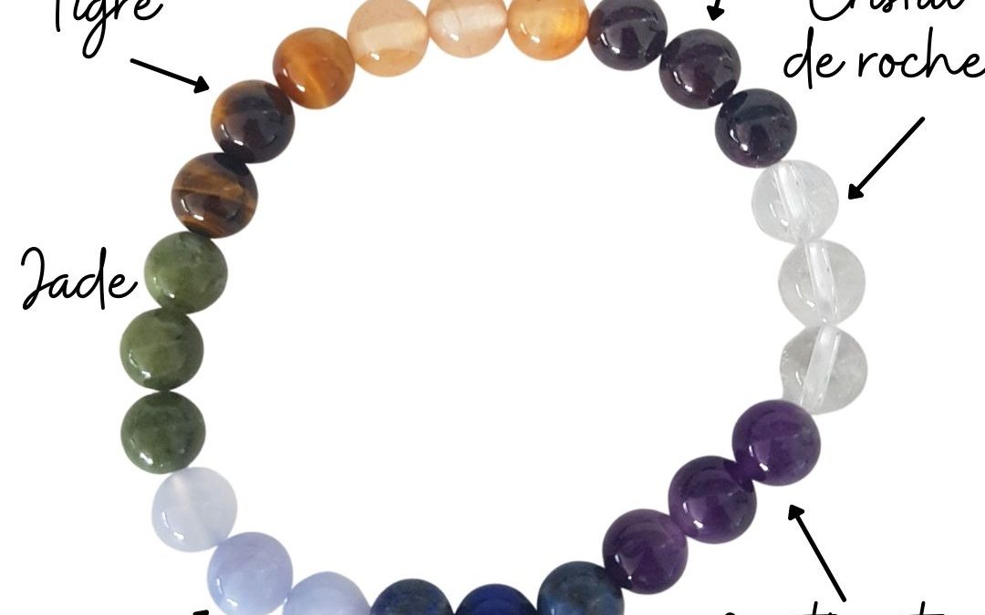 Chaque pierre a une résonance, le choix doit donc être fait avec plus de soin. Les pierres du bracelet 7 chakras vont affecter le physique et le psychique. Le chakra racine est activé par des pierres rouges : rubis, agate, corail et onyx. Le chakra sacré rime avec roches : pierre de lune et cornaline. Le chakra du plexus solaire est influencé par des pierres orangées : jade jaune, soufre, ambre et citrine. Le chakra du cœur est équilibré par la couleur verte : jade, émeraude, aventurine, tourmaline. Le chakra de la gorge va avec les pierres turquoises : topaze, calcédoine, aigue-marine et bien sûr turquoise. Le chakra frontal est activé par des pierres de couleur indigo ou bleu foncé : saphir, azurite, sodalite, lapis lazuli. Enfin, le chakra de la couronne est activé avec des améthystes, du quartz et des cristaux. C'est donc avant tout sa caractéristique qu'il faut prendre en compte lors du choix.